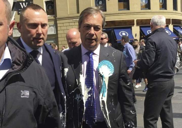 Brexit Party leader Nigel Farage splattered by milkshake on EU campaign trailProtester said he threw the banana-and-salted caramel Five Guys shake to protest Farage’s “bile and racism.”WorldMay 20, 2019
