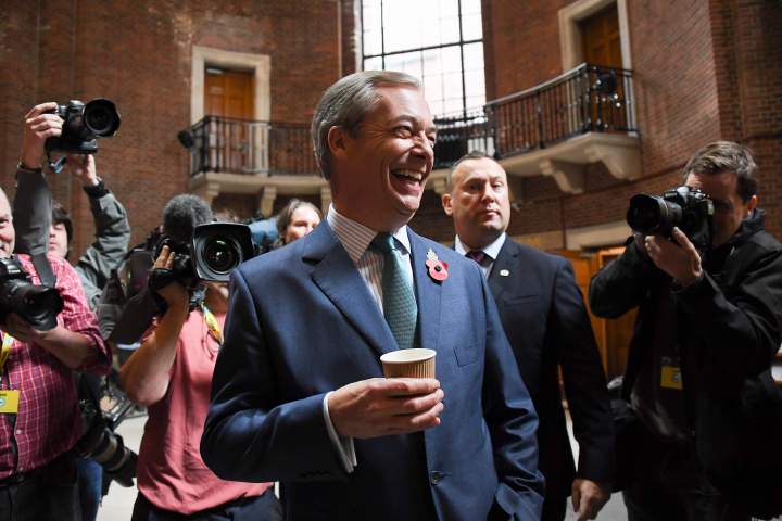 Brexit Party leader Nigel Farage says he won’t run in next month’s U.K. electionBoris Johnson's Conservatives are leading in the polls, but with the country still starkly divided over Brexit, the outcome is highly unpredictable.PoliticsNov 3, 2019