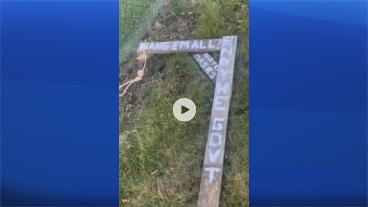 Protesters leave behind wooden gallow, noose at Grande Prairie MLA’s homeAlberta's former municipal affairs minister, Tracy Allard says she's outraged after COVID-19 protesters came to her house on the weekend and hung up a noose.CrimeNov 2, 2021