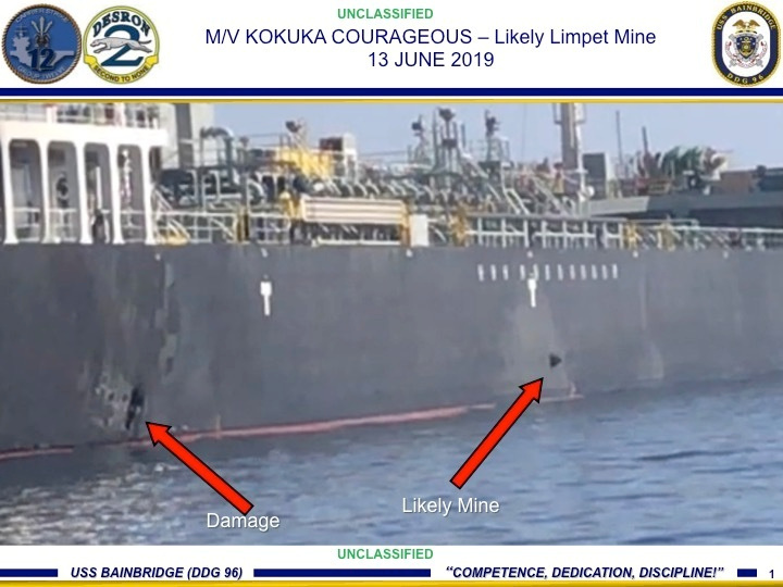 U.S. releases video showing alleged oil tanker sabotage it blames on IranThe U.S. released footage of what it says are members of Iran's Revolutionary Guard removing an unexploded mine from a damaged oil tanker.WorldJun 14, 2019