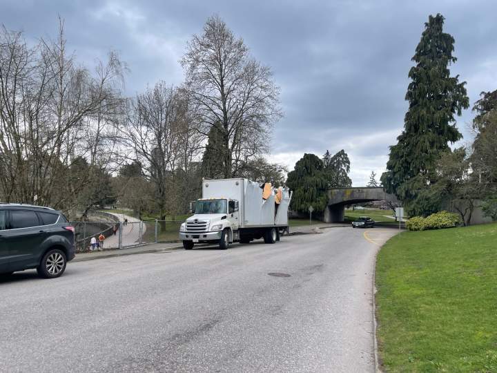 Cube van strikes pedestrian bridge in Stanley ParkA cube van struck the overpass on Stanley Park Drive almost in front of the Vancouver Rowing Club around 12:15 p.m. A witness said there was no apparent damage to the bridge.TrafficMar 25, 2024