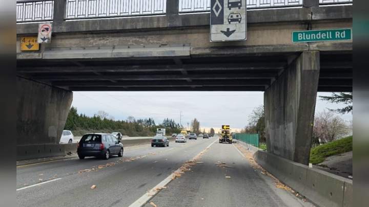 Traffic slowed after truck carrying lumber load hits Highway 1 overpassBC Highway Patrol says a truck carrying lumber hit the Gilmore overpass along Highway 1 on Wednesday morning. Drivers should expect delays while it is cleared.TrafficFeb 5