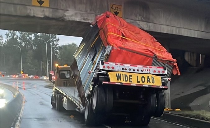 Truck with oversized load hits Delta overpass on Highway 99, snarling trafficDrivers were being urged to use Highway 91 and the Alex Fraser Bridge if heading from Richmond to Delta, after a truck with an oversized load struck a Highway 99 overpass.TrafficJul 18, 2023