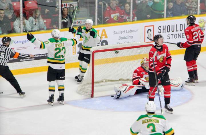 Big nights from Sam Dickinson and Sam O’Reilly help London down Owen SoundThe Knights head next to St. Catharines, Ont., to play the Niagara IceDogs on Saturday, March 1.SportsFeb 28