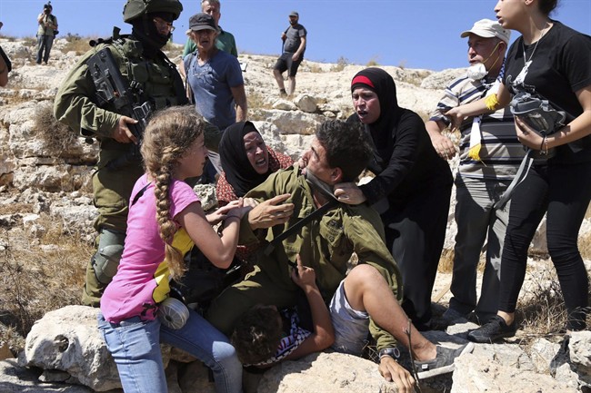 ‘Black eye’ or ‘PR stunt’? Video shows Israeli soldier struggle to arrest Palestinian boyA group of Palestinian women and girls struggled to pull an armed Israeli soldier off a 12-year-old boy who was being arrested for allegedly throwing rocks at soldiers during a protest last Friday.WorldAug 31, 2015