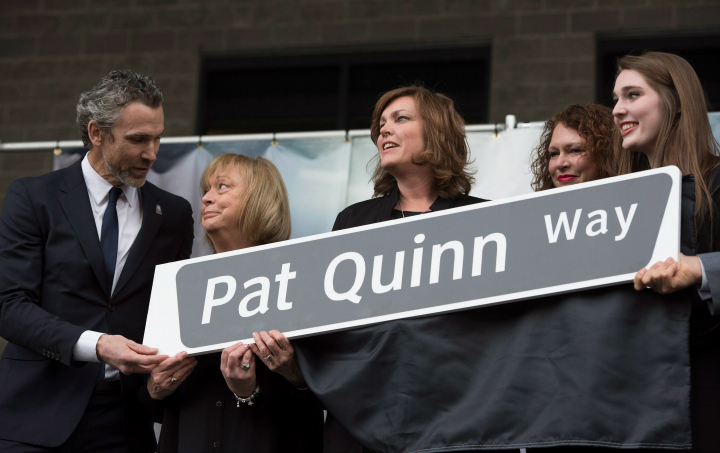 WATCH: Vancouver pays tribute to Pat Quinn, names street in his honourVancouver celebrated St. Patrick's day this year with a special tribute to former Canucks coach and Canadian hockey icon Pat Quinn.Mar 17, 2015