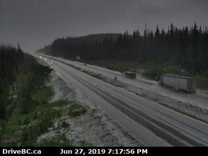 Snow blankets highway west of Okanagan, roadway slickThe area saw at least one rollover crash as the storm hit.TrafficJun 27, 2019