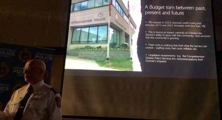 Peterborough police chief argues 11.7% budget hike needed to ‘just keep the lights on’Police service chief Stuart Betts held a town hall Monday to outline reasons the service needs a 11.7 budget hike in 2024. He also hinted about plans for a new police station.EconomySep 19, 2023