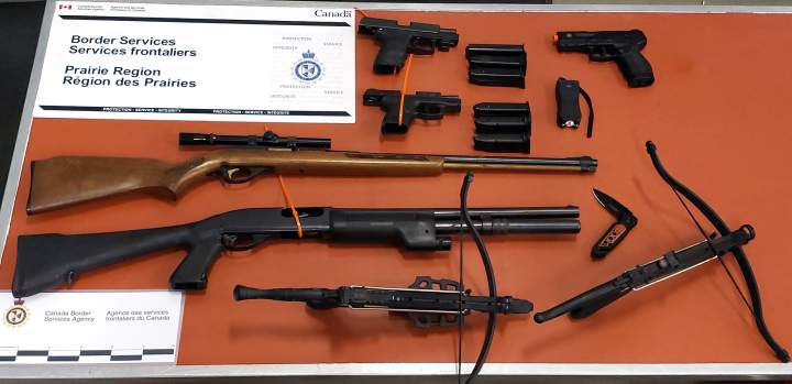 23 prohibited, restricted weapons seized in North Portal, Sask., at U.S. border crossing: CBSAThe Canada Border Service Agency seized 23 prohibited or restricted weapons and 28 pieces of related equipment at the North Portal, Sask. crossing this summer.CrimeSep 28, 2020