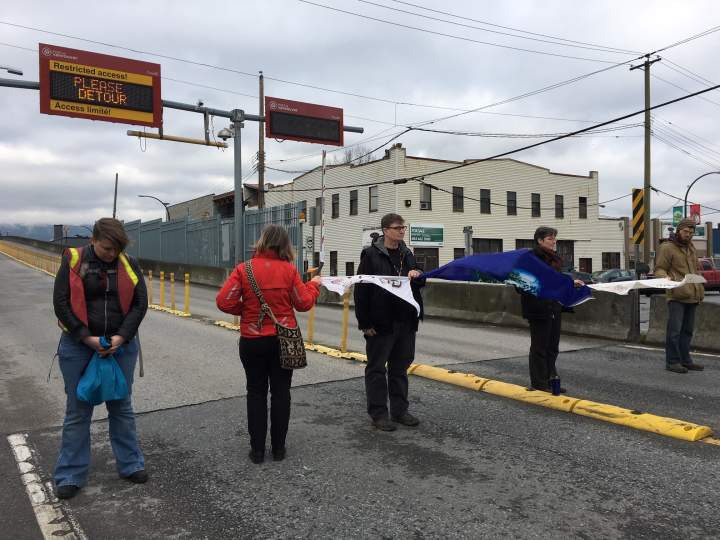 Small blockade returns to Port of Vancouver in defiance of court injunctionPhotos from the scene showed five protesters standing across the entrance to the facility's Clark Drive viaduct entryway.CanadaFeb 26, 2020