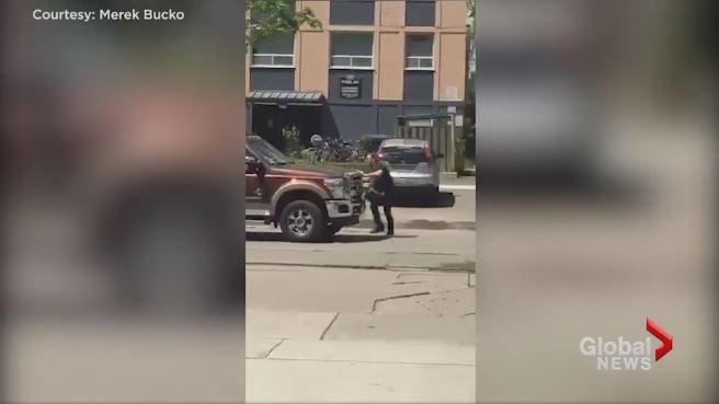 Video appears to show Toronto apartment company CEO nearly run over protester in ParkdaleAs tenants in Toronto’s Parkdale neighbourhood continue to advocate for better living conditions at multiple apartment buildings owned by MetCap Living, a shocking new video appears to show the company’s CEO nearly hit a protester with his pickup truck.CanadaMay 30, 2017