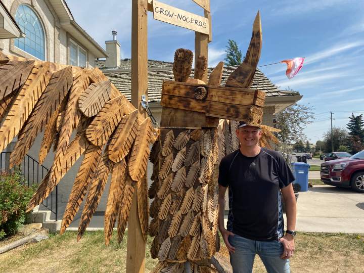 Building a ‘Crow-noceros’ turns into real adventure for Calgary artist“I was making this big crow and then I come out and I threw this rhinoceros head on it.”CanadaJun 14, 2023