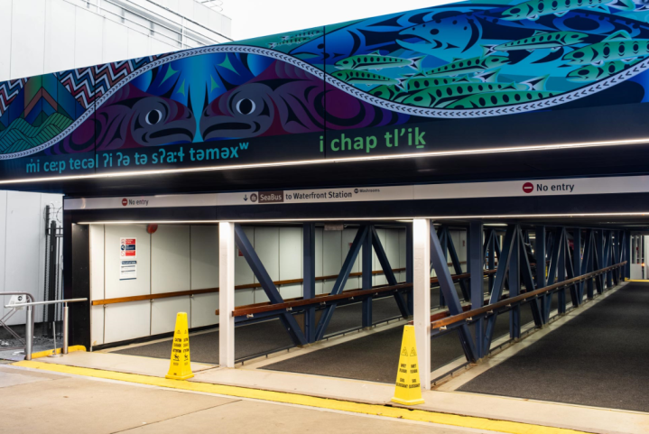 New SeaBus terminal artwork welcomes commuters in 2 B.C. First Nations languagesA sign at the Lonsdale Quay terminal entrance bid patrons "Welcome" in Sḵwx̱wú7mesh sníchim, and "Welcome to our lands and waters" in hən̓q̓əmin̓əm̓.CanadaJan 10, 2023