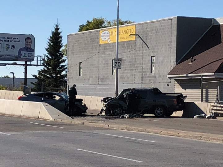 Paramedics take motorists to hospital after serious crash on Sid Buckwold BridgeSaskatoon police blocked off the southbound bridge lanes so their teams could investigate a crash between an SUV and car that took place Sunday morning.CanadaSep 27, 2020