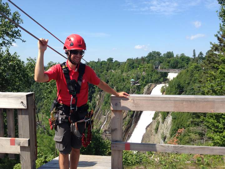 New double zip line flies visitors over Montmorency FallsWould you try out the adrenaline-pumping, new 300-metre double zip line across the Montmorency Falls near Quebec City?CanadaJul 27, 2016