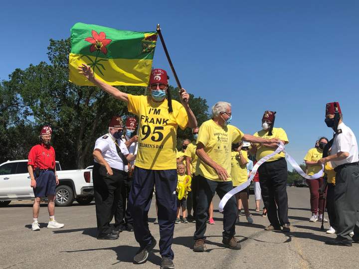 95-year-old Frank Atchison wraps 260 km fundraising walk for sick kids in ReginaAfter a two-month journey by foot of more than 260 kilometres, Frank Atchison completed his fundraising walk through central Saskatchewan in Regina on Tuesday afternoon.FeaturesJun 15, 2021
