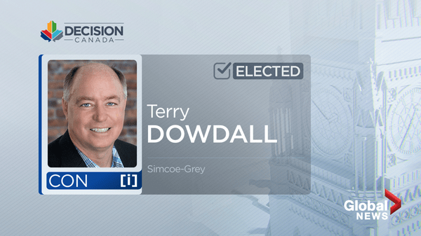 2019 Canada election results: Simcoe–GreyGlobal News has declared Terry Dowdall of the Conservative Party the winner in the riding.PoliticsSep 22, 2019