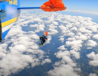 Skydiver left hanging at 15K feet after parachute catches plane’s tailFootage from the jump shows the first skydiver and the camera operator climbing out of the roller door and the handle for the diver's reserve parachute snagging on the wing flap.TrendingDec 12