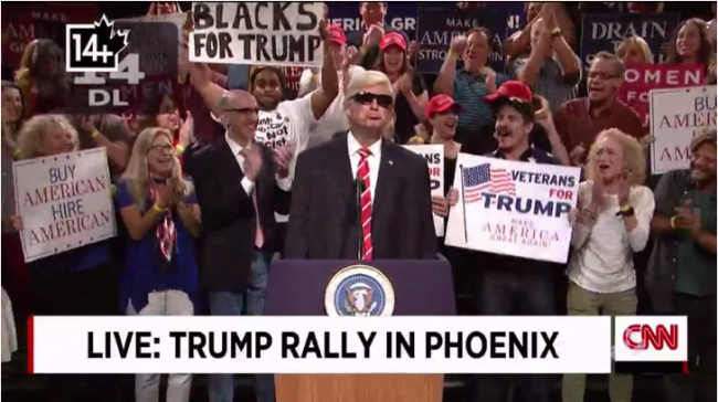 Alec Baldwin lampoons Donald Trump’s Phoenix rally on SNL Weekend UpdateBaldwin parodied Trump's attempt to deny and misrepresent his own public comments about Charlottesville, and mocked his relationship with Steve Bannon.EntertainmentAug 24, 2017