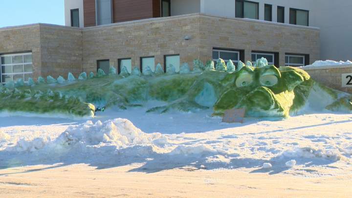 Giant green snow dragon created in Greenbryre area, two dragons in SaskatoonThere are now two giant snow dragons patrolling front yards in Saskatoon. The newest mythical flying creature is bigger than its twin.CanadaDec 13, 2020