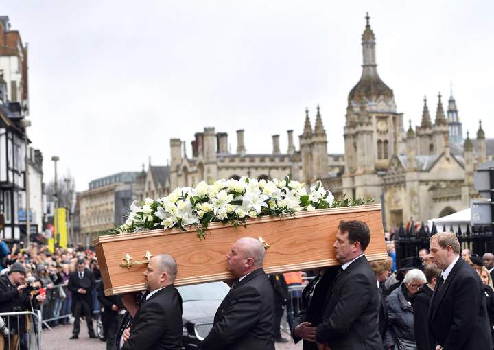 Hundreds line Cambridge streets to honour Stephen HawkingHundreds of people lined the streets of Cambridge, breaking into applause as the hearse carrying the remains of Stephen Hawking arrived at the church.WorldMar 31, 2018
