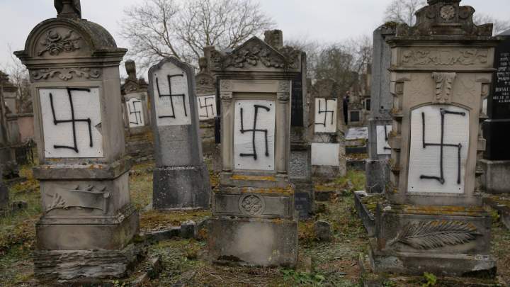 Anti-Semitic acts spike 69% in France, punctuated by 37 Holocaust survivor gravestones vandalizedDozens of graves in a Jewish cemetery in Strasbourg, France, were desecrated with spray-painted swastikas on Monday night. Anti-Semitic attacks in France spiked 69 per cent since the beginning of 2018.CrimeDec 14, 2018