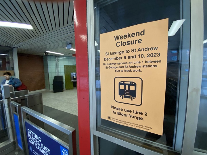 Six TTC subway stations closed this weekendThe TTC has closed six subway stations on Line 1 Yonge-University this weekend due to scheduled track work. Transiters will have to seek alternate routes of travel.TrafficDec 9, 2023