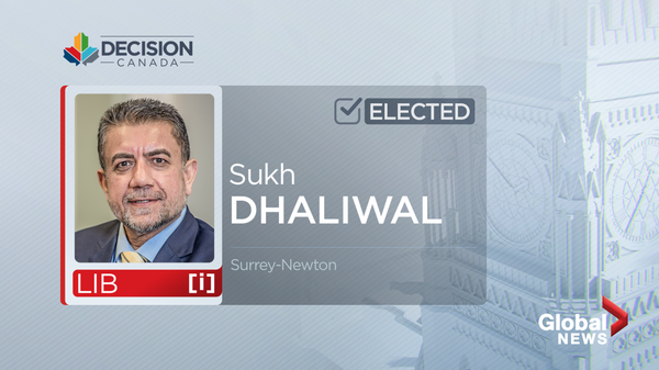 Canada election results: Surrey–NewtonLiberal Sukh Dhaliwal has been re-elected in Surrey-Newton, Global News projects.PoliticsAug 15, 2021