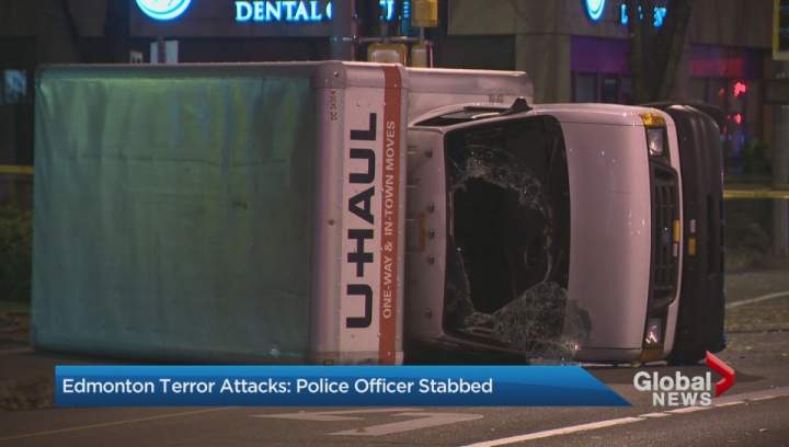 Edmonton terror attacks: Police officer stabbed, people struck by U-HaulA Edmonton police officer was stabbed near Commonwealth Stadium and four pedestrians injured by a fleeing U-Haul truck in what police are investigating as acts of terrorism.CrimeOct 1, 2017