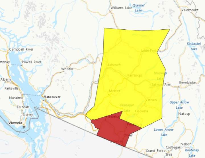 Thunderstorm watch for Okanagan, South Thompson, South Cariboo regionsEnvironment Canada says conditions are favourable for the development of thunderstorms that could produce strong wind gusts, large hail and torrential rain.WeatherJun 24, 2023