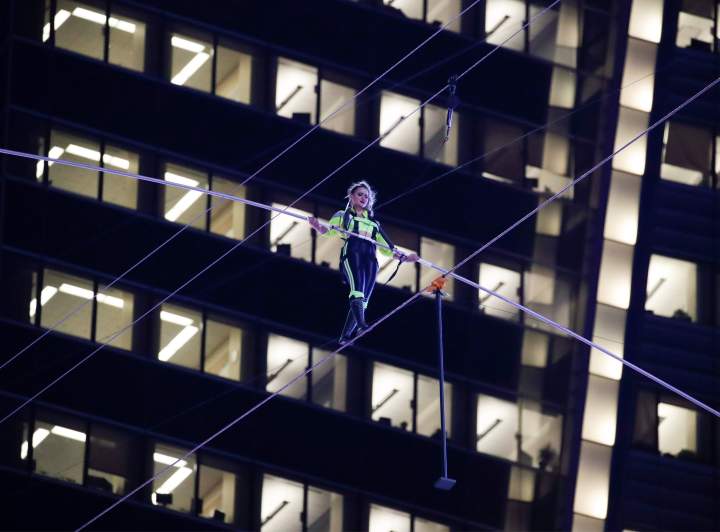 Flying Wallendas cross Times Square on tight rope 25 storeys highTheir latest daredevil stunt was streamed live on ABC and watched by thousands of spectators from below.WorldJun 23, 2019