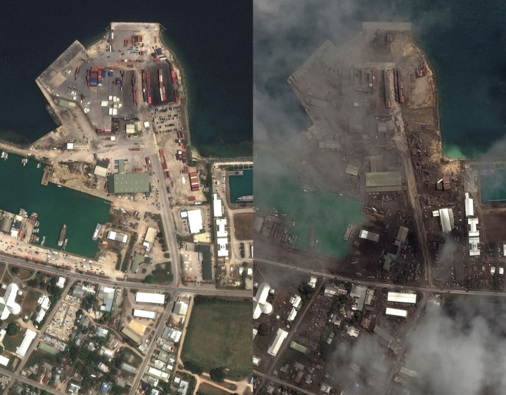 Shocking before-and-after photos show Tonga volcano’s widespread damageWaves that crossed the Pacific Ocean drowned two people in Peru and caused minor damage from New Zealand to Santa Cruz, California.WorldJan 18, 2022