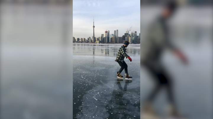 Video shows man skating on frozen Toronto harbour against iconic skylineThe video was filmed in Toronto on Dec. 28, when temperatures dipped down to -22.5 C, breaking a record dating back to 1960.WeatherJan 2, 2018