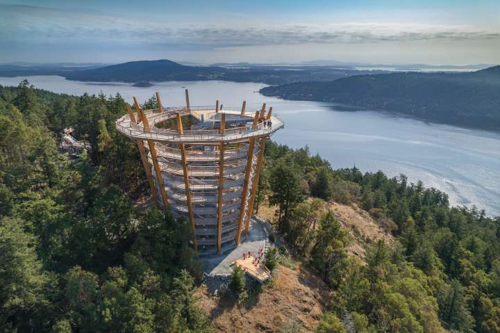 Eye-catching new tourist attraction opens on Vancouver IslandThe new Malahat Skywalk, located about half an hour north of Victoria, features a 600-metre elevated walkway through the treetops to a spiral tower 250 metres above sea level.CanadaJul 15, 2021