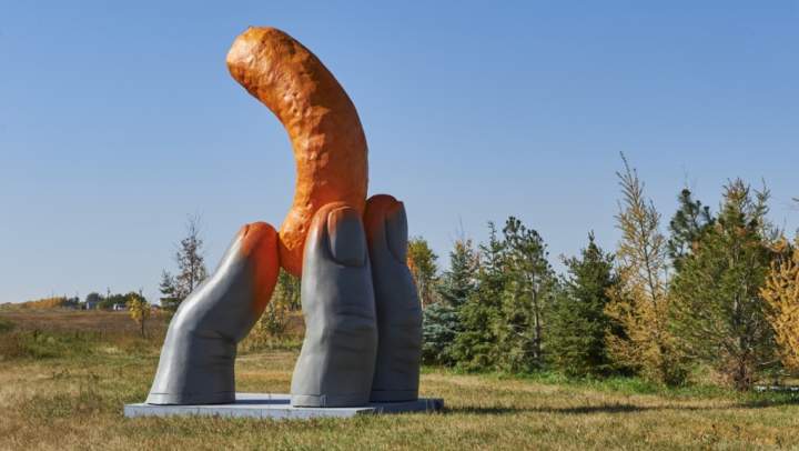 Giant ‘Cheetos’ landmark draws tourists to small Alberta hamletYou would be forgiven for not knowing about Cheadle, Alta., but the small hamlet of under 100 people east of Calgary is suddenly gaining a lot of attention.TrendingOct 4, 2022