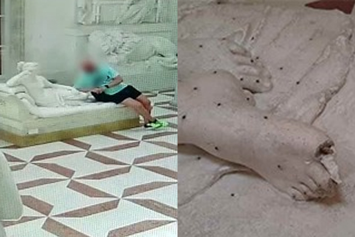 Clumsy tourist snaps toes off statue while posing for photo in ItalyVideo shows the tourist mimicking the statue's pose just before he leaned against it, snapping off its toes.TrendingAug 6, 2020