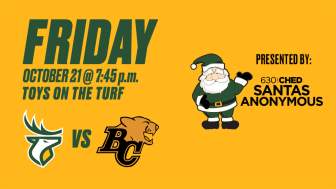 Toys on the Turf for 630 CHED Santas Anonymous raises more than $35KFans attending Friday's Edmonton Elks game will be able to bring a new, unwrapped toy to contribute to the Toys on the Turf campaign for 630 CHED Santas Anonymous.FeaturesNov 5, 2021