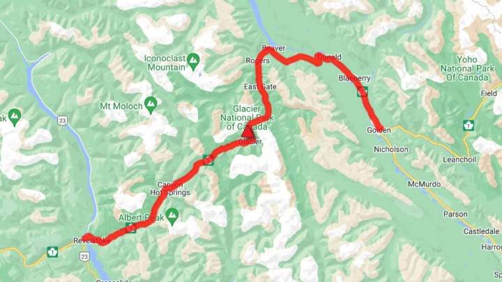 Travel advisory issued for Trans-Canada Highway in B.C. between Golden and RevelstokeThe travel advisory covers the 150-km stretch of Highway 1 between Highway 23 South and Golden Donald Upper Road.TrafficApr 8, 2023
