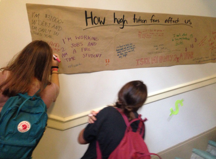 King’s College students scrawl messages on campus walls in tuition-fee protestIn the 2015 budget, the Liberal government announced it would temporarily lift the three per cent tuition increase cap, allowing universities in the province to increase prices by any amount they saw fit.CanadaSep 19, 2016