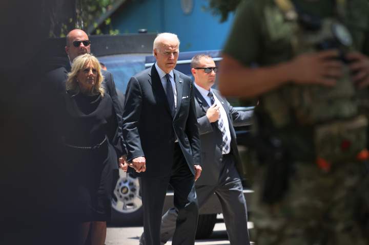 Joe Biden vows action amid visit to Texas school shooting siteIn Uvalde, Joe Biden visited a memorial of 21 white crosses and first lady Jill Biden added a bouquet of white flowers to those already placed in front of the school sign.WorldMay 30, 2022