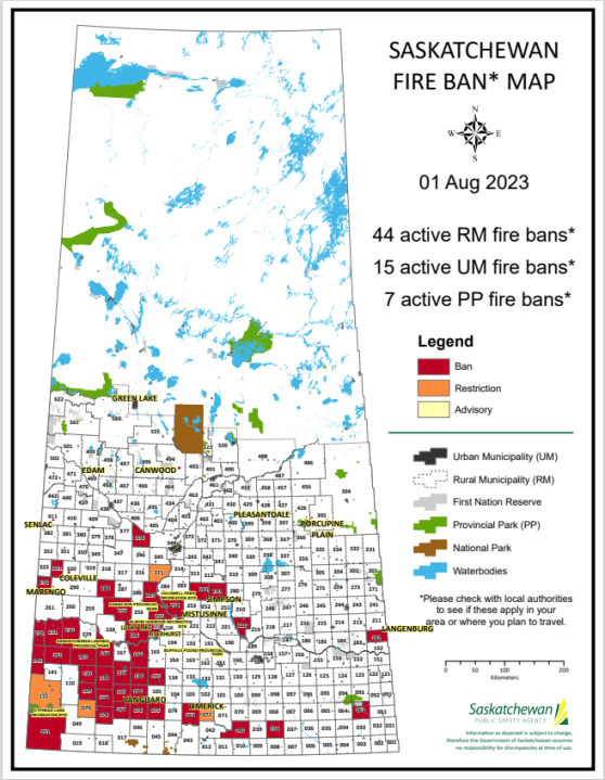 SPSA reminds campers to be aware of fire bans during long weekendThe RM of Vanscoy declared a fire ban as of Tuesday, adding it to a list of 40 areas under fire bans according to the Saskatchewan Public Safety Agency (SPSA).CanadaAug 1, 2023