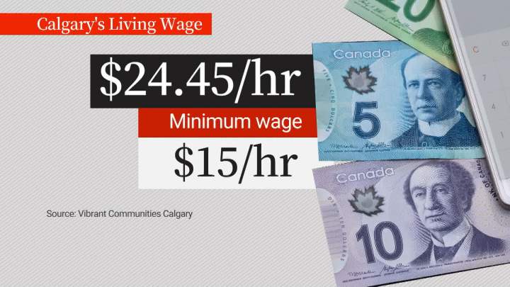 Calgary’s ‘living wage’ hit by soaring cost of food and housingA new report says the living wage (the cost of paying for all neccesities) in Calgary is 63 per cent higher than the province's minimum wage.EconomyNov 18, 2024