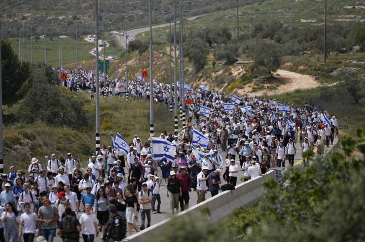 Israeli government figures lead thousands in defiant march on West Bank settlementThe mass rally also threatened to further raise tensions that have been heightened by days of unrest across the region over a contested Jerusalem holy site.WorldApr 10, 2023