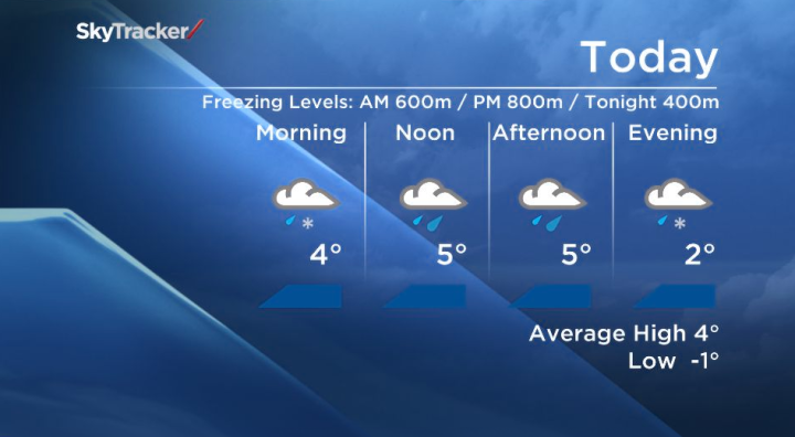 Cooler Temps SaturdayCurrent radar picking up precipitation in parts of the Okanagan. With freezing levels around 600m this morning, areas near the lake are seeing the precip fall as rain but areas on higher ground are seeing wet snow. As snow levels rise to about 800m later today most areas except for the mountain passes will see...WeatherNov 15, 2013
