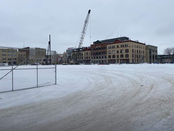 Ground broken on Market Lands in Winnipeg, other construction projects still pausedAfter almost a decade of wondering what to do with the site of an old public safety building and parkade, ground has finally been broken for Market Lands.EconomyJan 23, 2024