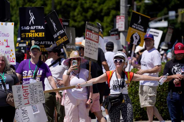 Steps from TIFF, striking actors, writers rally at Canadian offices for Apple, AmazonFilm and TV star Patricia Arquette joined dozens of actors and writers who rallied outside the Canadian headquarters of Amazon and Apple to support ongoing labour protests.CanadaSep 9, 2023