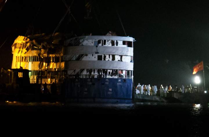 Rescuers right capsized Chinese ship on Yangtze River; 97 bodies found so farTop-deck cabins poked out of the water from a capsized river cruise ship on the Yangtze on Friday after disaster teams righted the vessel to quicken the search for more than 360 victims still missing.SportsJun 4, 2015