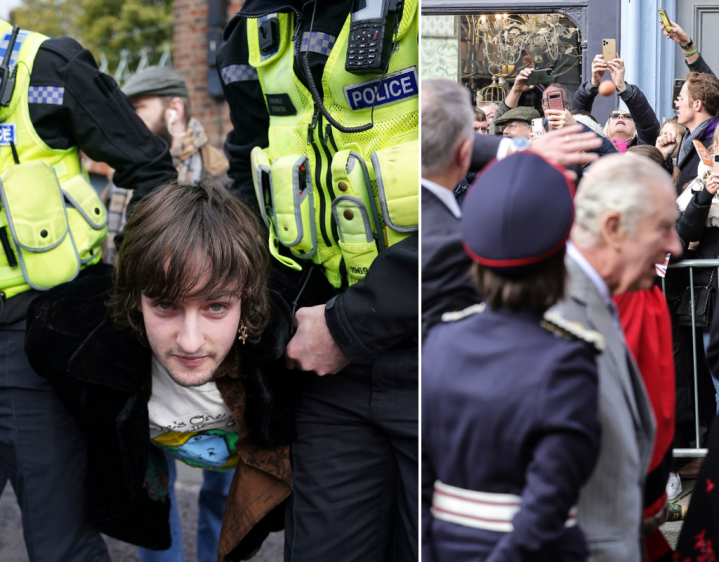 Protester arrested after eggs hurled at King Charles during ceremonyKing Charles III and Camilla were greeting crowds during an official ceremony, when several eggs went zipping by their heads.WorldNov 9, 2022