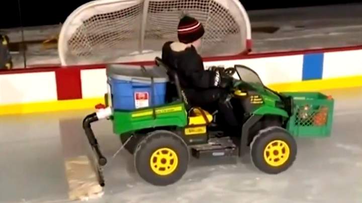 New Brunswick boy driving a mini-Zamboni noticed by NHL"Every night he likes to take it out and pretend he’s a real Zamboni driver.”CanadaJan 24, 2021