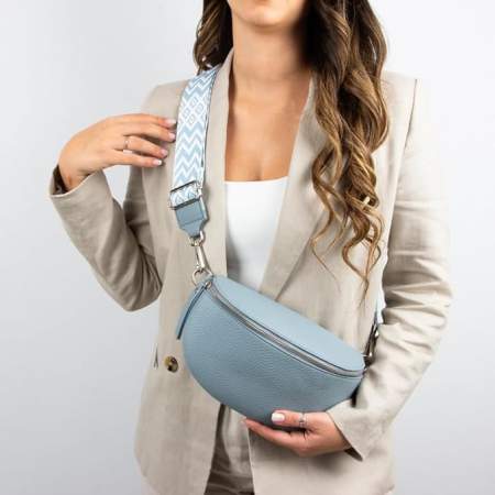 Wear it sling style, cross body or as a fanny pack. However you roll, this ‘lil bag is an easy way to take a spin with baby blue if you’re new to the hue.